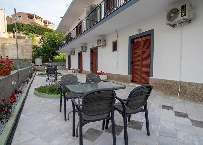 Dit Marias Seaside Apartments Acharavi hotel met 3 sterren is gelegen op 2 km van de Church Ipapantis en op circa 5 minuten wandelafstand van het Roda-strand. Het aparthotel ligt op 4 km van de Nymfes Waterval en bestaat uit 6 kamers met een uitzicht op de tuin.