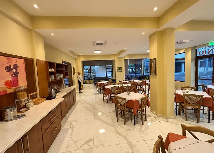 Hotel Europa Olympia Ancient Olympia met 24 kamers ligt binnen 18 minuten wandelafstand van de Zeustempel van Olympia en biedt wifi in openbare gebieden en parkeerplaatsen. Dit unieke hotel heeft een verhoogde locatie in het centrum van Ancient Olympia en heeft onder andere een archeologisch museum.