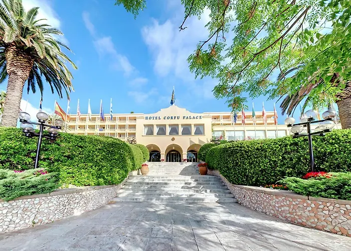 Het superieure Corfu Palace Hotel met 5 sterren heeft een banketzaal, geschikt voor bijeenkomsten, en ligt binnen 14 minuten wandelafstand van het Nieuwe Fort. Dit hotel, dat van een gemakswinkel en een restaurant is voorzien, is vrij dicht bij het Archeologisch Museum Corfu gesitueerd.