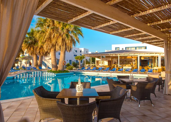 Het stijlvolle Sol Marina Beach Crete Gouves hotel met 4 sterren, dat binnen circa 10-minuten rijafstand van Nirou is verwijderd, biedt accommodatie aan de zeeboulevard van Gouves binnen 3 km van het Dinopark. Er is een à-la-carterestaurant met internationale keuken en een zwembad beschikbaar op het terrein.