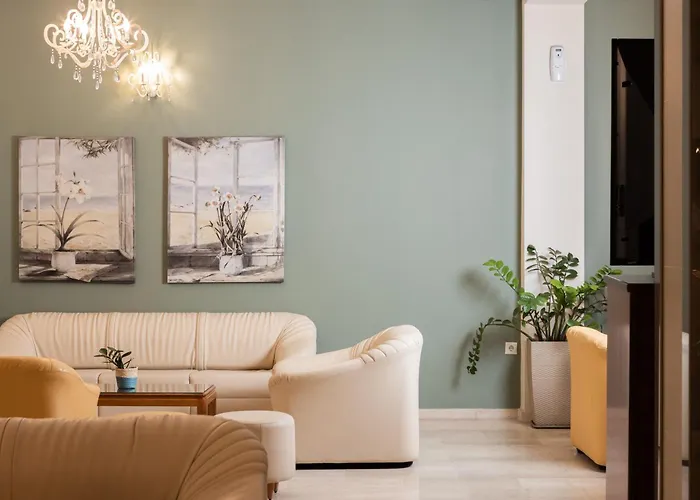 Nomas Living Aparthotel Kalamákion met 9 kamers, gelegen op 15-minuten rijden van Dimokratias-plein, biedt een zwembad en draadloos internet in openbare gebieden.