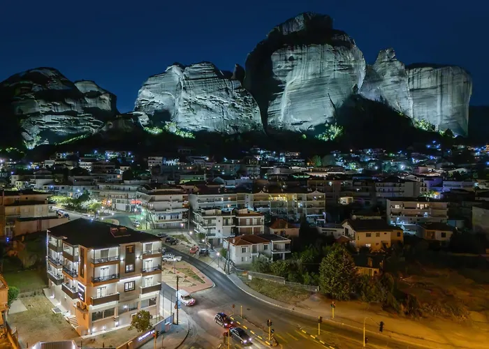 Het Meteoron Suites Kalampáka hotel met 4 sterren ligt op circa 6 minuten te voet van Digital projection center of Meteora's history and culture en biedt fietsgebruik en wandeltochten aan. Het aparthotel biedt ook een wifi in de hele accommodatie.