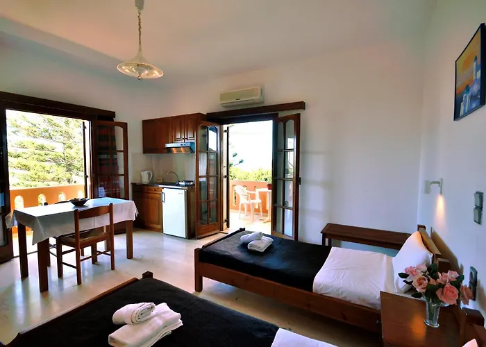 Haris Apartments Kokkini Hani hotel met 16 kamers ligt binnen 25 minuten loopafstand van het Cretaquarium en biedt Wi-Fi in de kamers en gratis privéparkeerplaatsen. Dit 3-sterrenhotel beschikt over een archeologisch museum en het Dinopark bevindt zich op 2 km verderop.