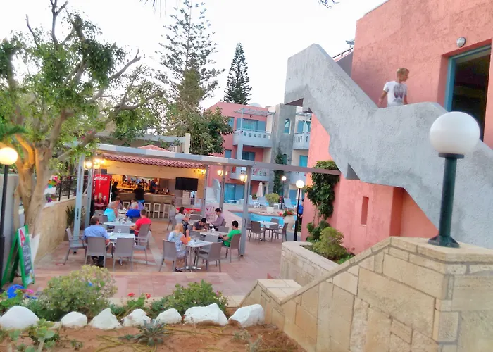 Dit hotel is gelegen op 3 km van het Waterpark Watercity. Een korte wandeling brengt je naar het Kokkini Hani-strand, binnen 5 minuten wandelen ervandaan. Voor wie van ver komt, ligt de luchthaven Iraklion op 11 minuten rijden.