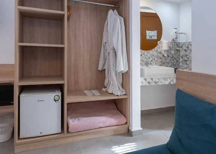 Dit hotel is perfect gelegen op rijafstand van 15 minuten van het Fort van Sint Nicolaas. Memphis Beach Kolymbia is ook binnen een paar straten van Rodos Nature (natuurgebied) gesitueerd. Bezoekers zullen graag winkelen, want deze accommodatie met 116 kamers omringd door een winkel en supermarkten. De bushalte Atlantica Imperial bevindt zich op 450 meter verwijderd van dit hotel in Kolymbia.