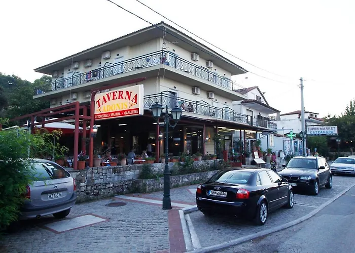 Hotel Adonis Kriopigi met 16 kamers biedt accommodatie met hogesnelheidstoegang tot het internet in openbare gebieden op 10-minuten rijden van Pigadakia Kryopigis. Er is een bagage-opslag en een restaurant op het terrein.