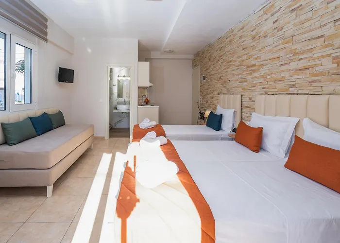 Basilio'S Studios Leptokaryá hotel met 13 kamers heeft een ligging aan het strand op slechts 10 minuten lopen van het strand van Paralia en beschikt over een archeologisch museum. Extra voorzieningen in het 4-sterrenhotel zijn een zonneterras met meubels.