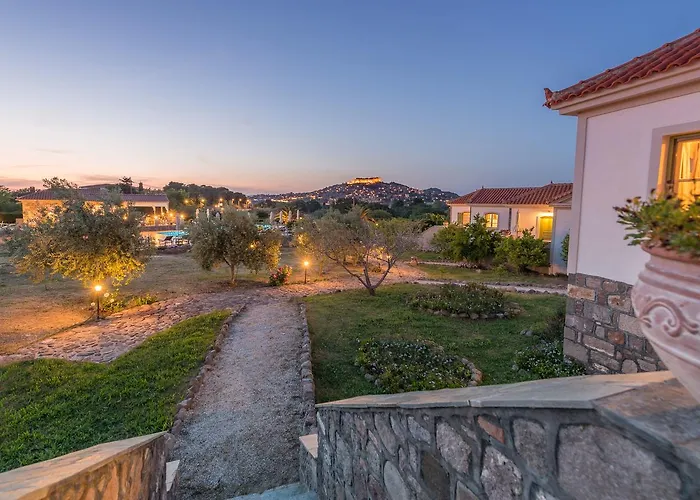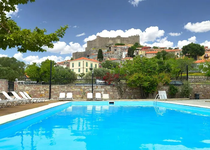 Het Villa Molivos Castle Mithimna hotel met 4 sterren, gelegen op ongeveer 25 minuten te voet van de Molyvos jachthaven, biedt uitzicht op het zwembad. Gasten die in het aparthotel verblijven, kunnen hun auto parkeren ter plaatse.