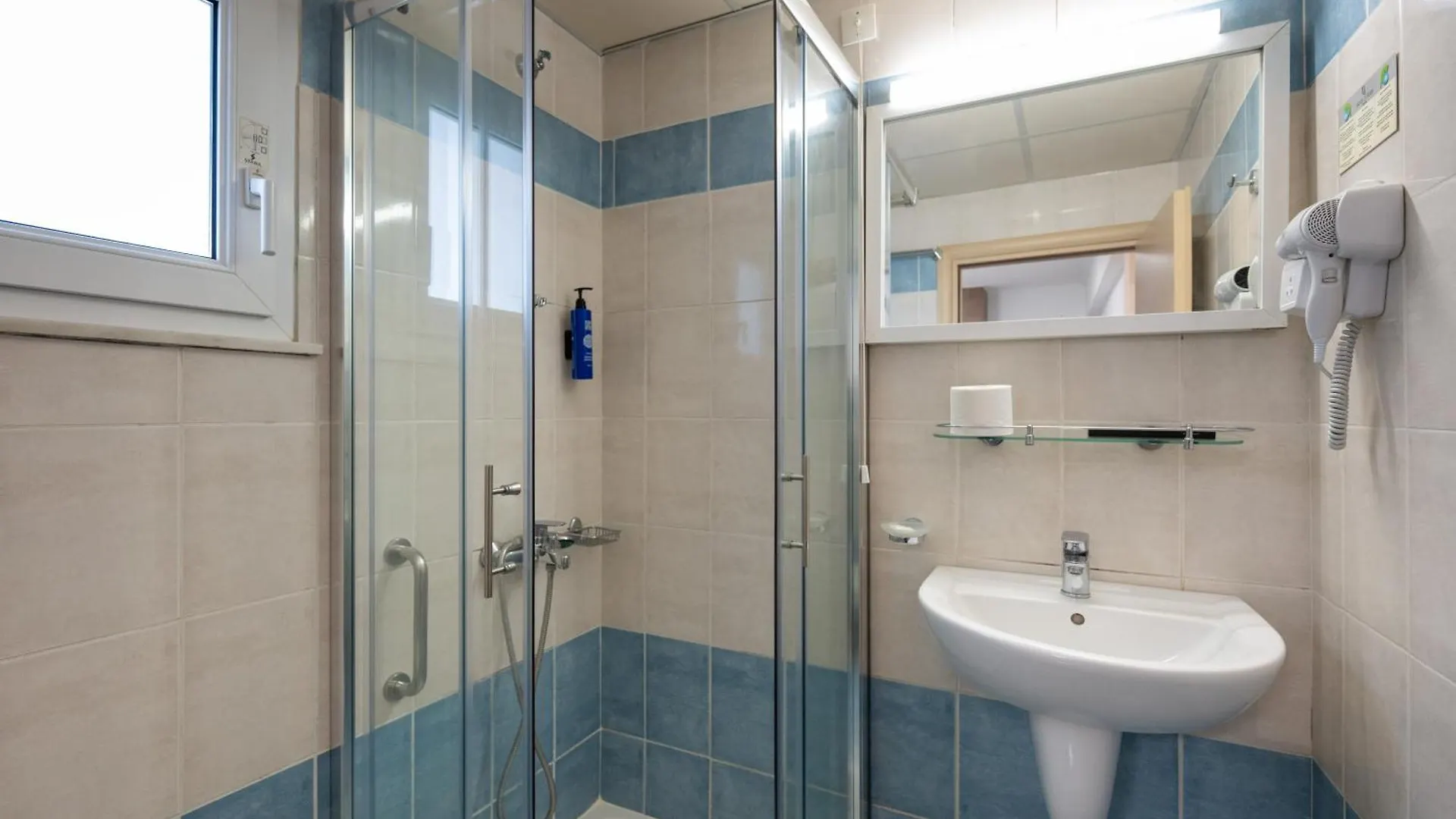 Blue Sea Hotel Mytilíni met 10 kamers, met een archeologisch museum, ligt op korte rijafstand van 10 minuten van het Romeinse Aquaduct bij Moria. Er is een bagage-opslag en een winkelgebied op het terrein.