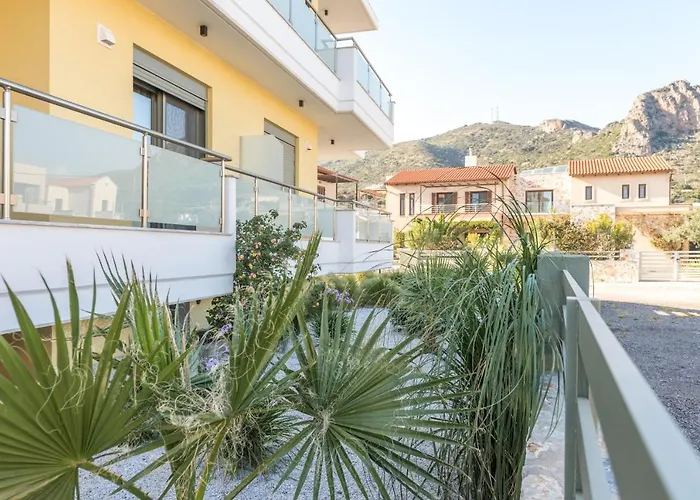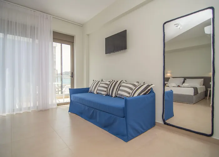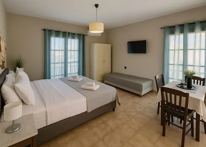 Het Evriali Comfort Living Paleochora hotel met 4 sterren ligt 2 km verwijderd van het Karavopetra strand en beschikt over wifi in de kamers. Het aparthotel heeft een tuin met een balkon.