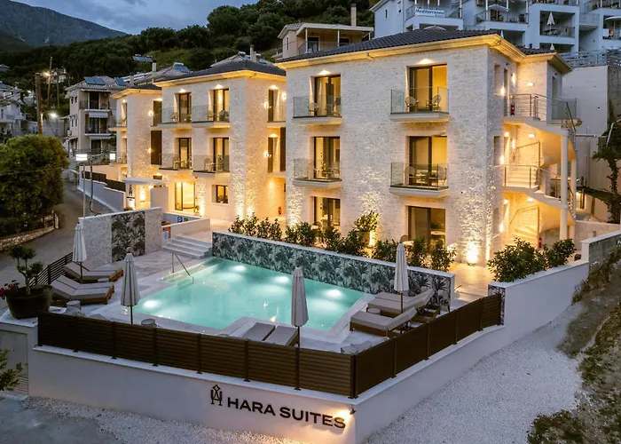 Hara Suites Parga hotel met 13 kamers heeft een zwembad en ligt in de Parga Town wijk binnen 18 minuten loopafstand van het Strand van Valtos. Dit aparthotel verleidt gasten ook met pendeldienst.