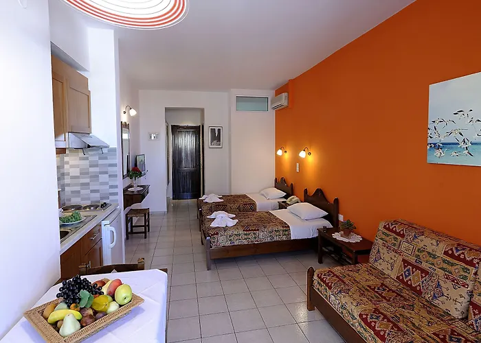 Dit aparthotel is gelegen in de buurt van het uitgaansgebied, op een rijafstand van 15 minuten van het Centrum voor Byzantijnse Kunst en vrij dicht bij de Evelin Divers. Elida Platanes is gelegen in de historische wijk en op afstand van 7 km van het Venetiaanse fort. Natuurliefhebbers zullen de nabijheid van Blue Beach waarderen, dat op 14 minuten wandelen vandaan ligt. De bushalte Plantanes bevindt zich op 250 meter hier vandaan.