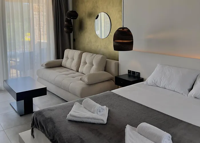 Het Astra Sarti Luxury Suites hotel met 3 sterren is gesitueerd in Sarti binnen 25 minuten lopen van het Folkloremuseum van Polygyros en biedt een seizoensgebonden buitenzwembad. Gasten kunnen genieten van de tuin van dit aparthotel, die is versierd met barbecuefaciliteiten.
